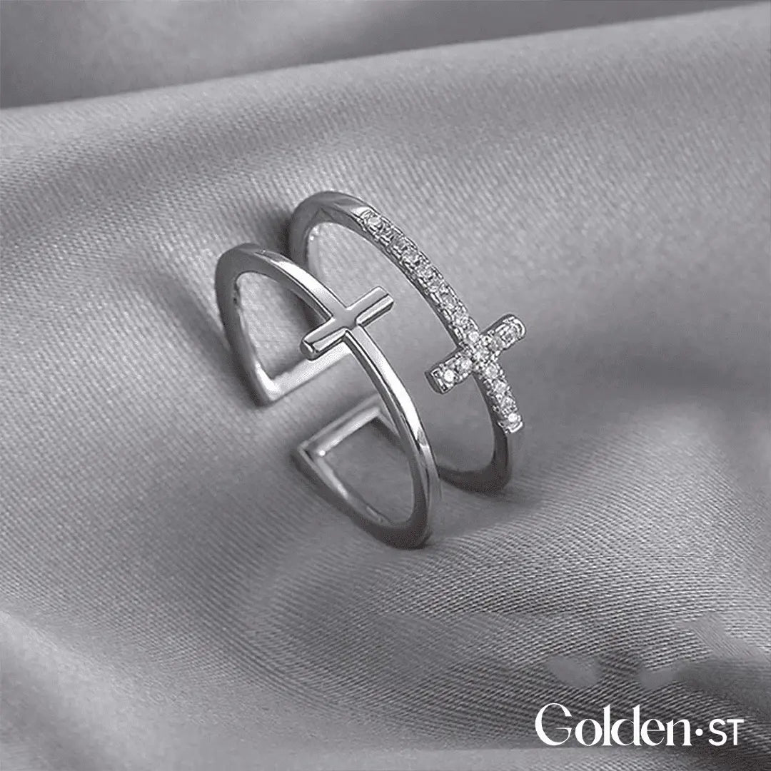 Anel Duplo de Cruz - Folheado a Ouro | FRETE GRÁTIS + Brinde